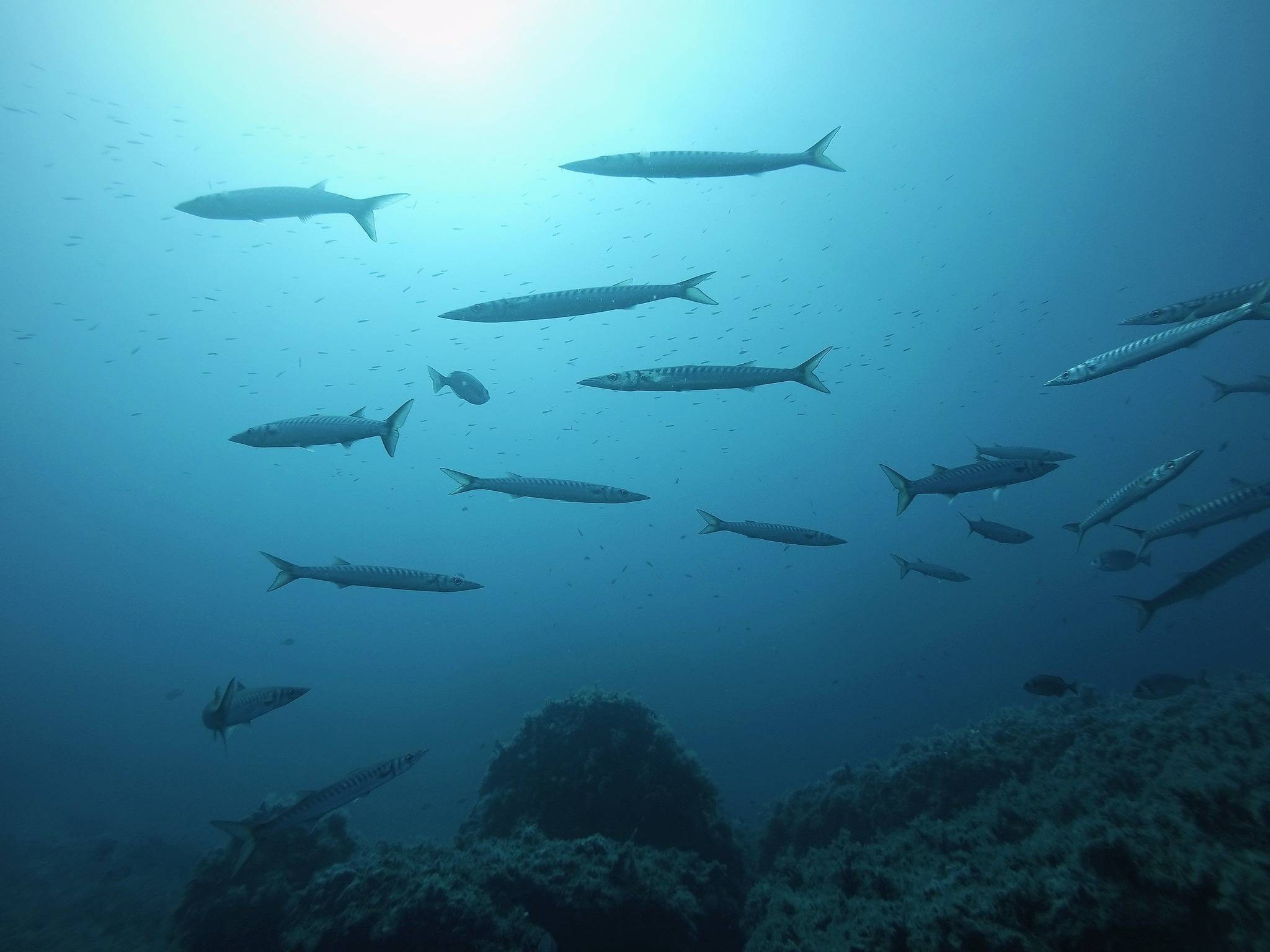 I fondali qui sono straordinari: pareti e secche granitiche, praterie di posidonia che ondeggiano nel blu e banchi di pesci tropicali che cambiano forma ad ogni respiro. Cernie, barracuda e vita marina incredibilmente varia trasformano ogni immersione in un incontro diretto con l’oceano.